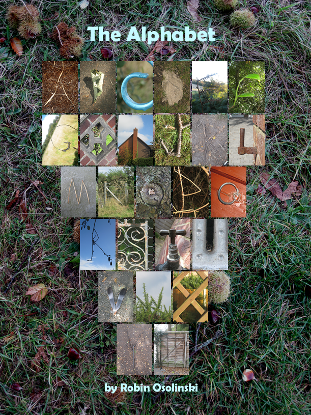 I had a lot of fun going out and taking pictures of natural and man-made objects that resembled letters of the alphabet. I had even more fun deciding on which images were best and then putting them together in one image.