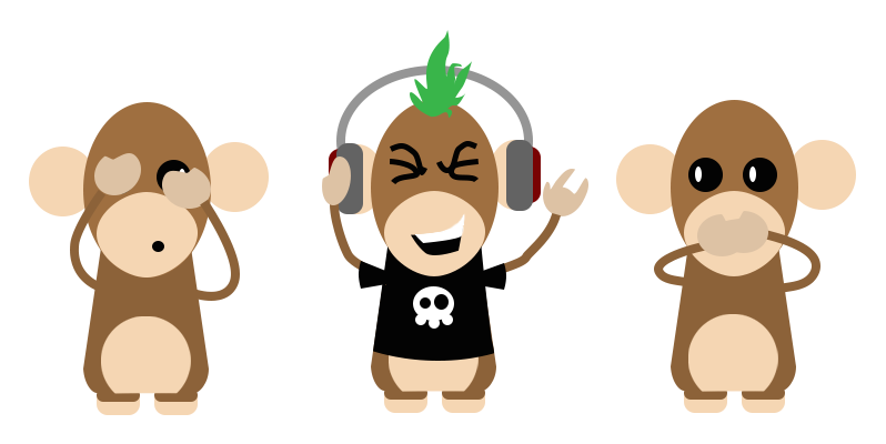 This simple image was created with the saying "Monkey see, Monkey Hear, Monkey speak" in mind. My graphic takes this saying and adds a different spin on it. The monkey in the middle is meant to cover his ears and avoid all sound, but instead is listening to loud music, clashing against the original meaning.