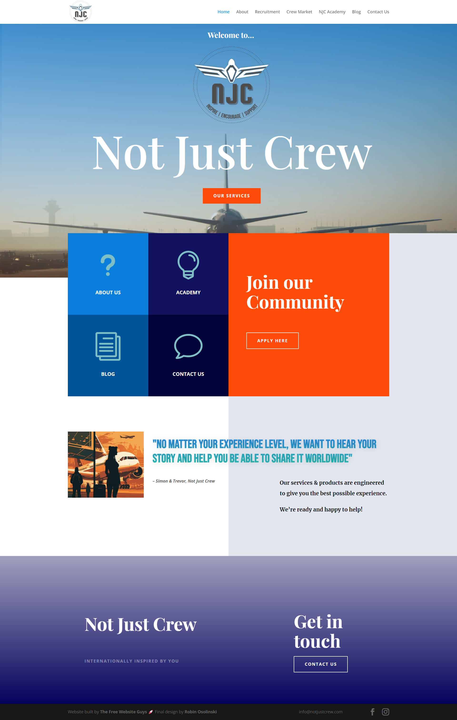 My experience with Not Just Crew over the years has been completely streamlined and amiable; so it has been especially rewarding to see their progress and growth since I first got in contact with them in 2020. Their initial one-page site, which I previously designed for them, therefore reflected this growth by now being expanded into a further developed hub of knowledge and services. Their main audience is not just crew, but people looking for work, products and advice in general.