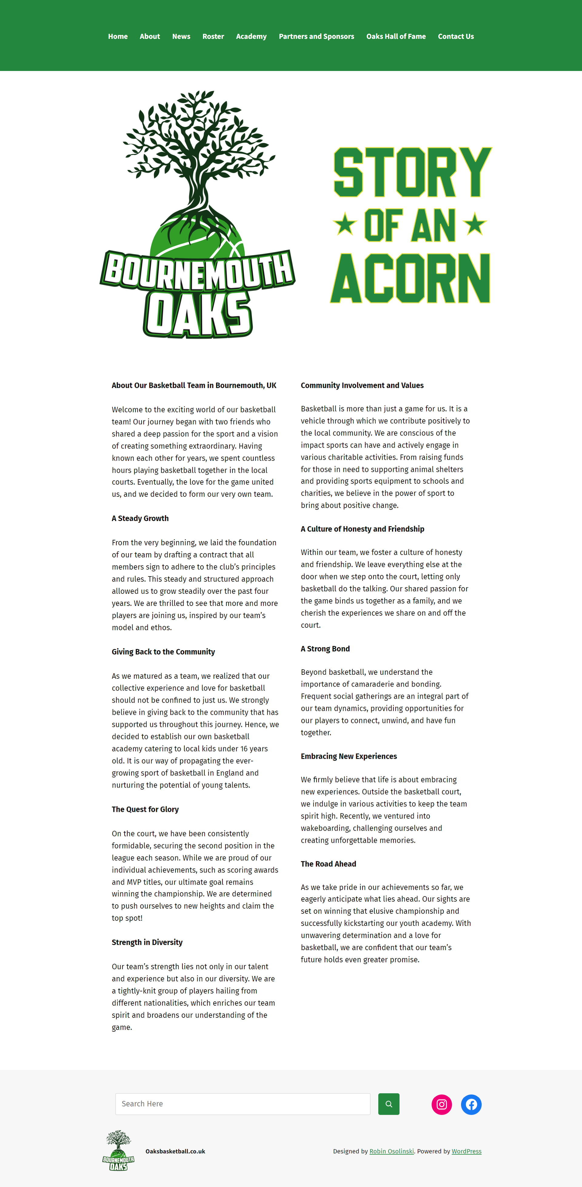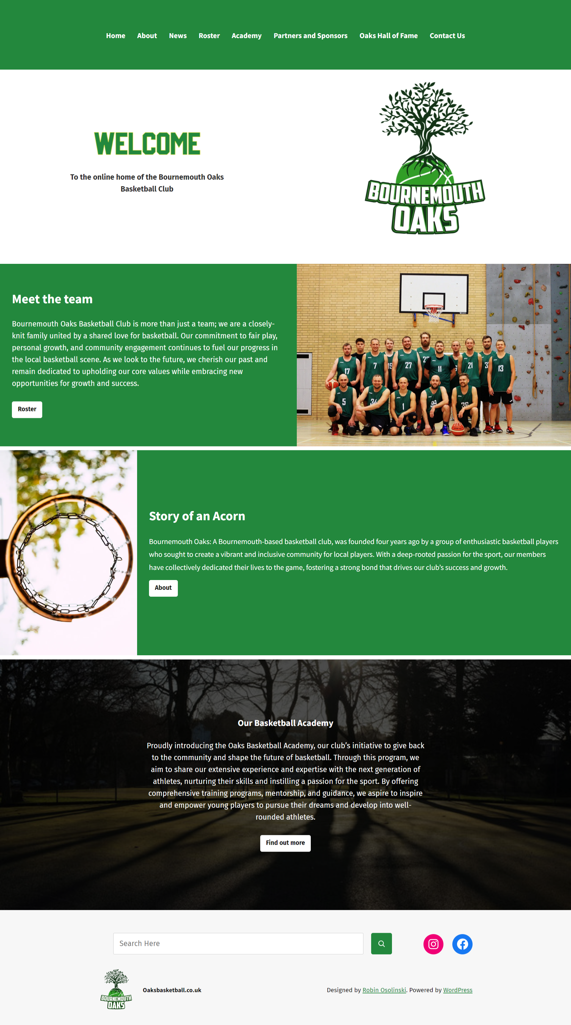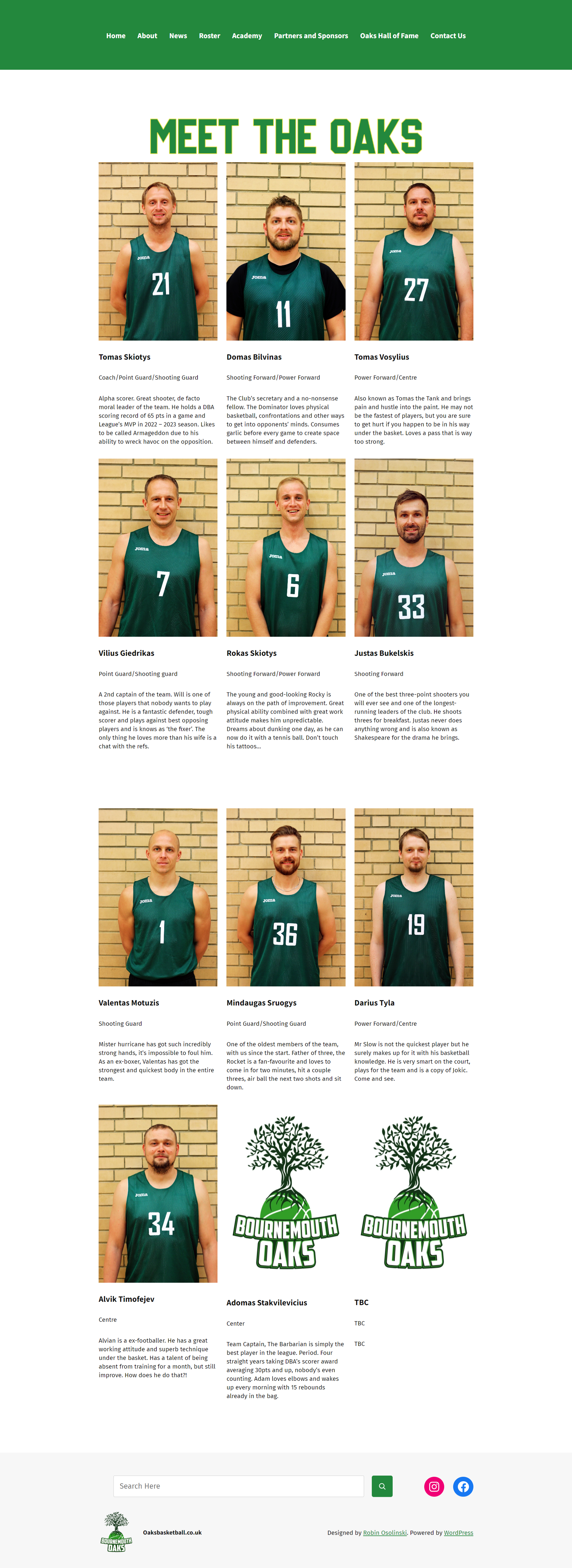 I was recently commissioned by Tomas Skiotys, the Coach, Point & Shooting Guard of the Bournemouth Oaks. This local basketball team required a new site with a domain transfer to be done quickly and efficiently. As such, I quickly stepped up to the job and revamped the the official Bournemouth Oaks website and give it a brand new look.
