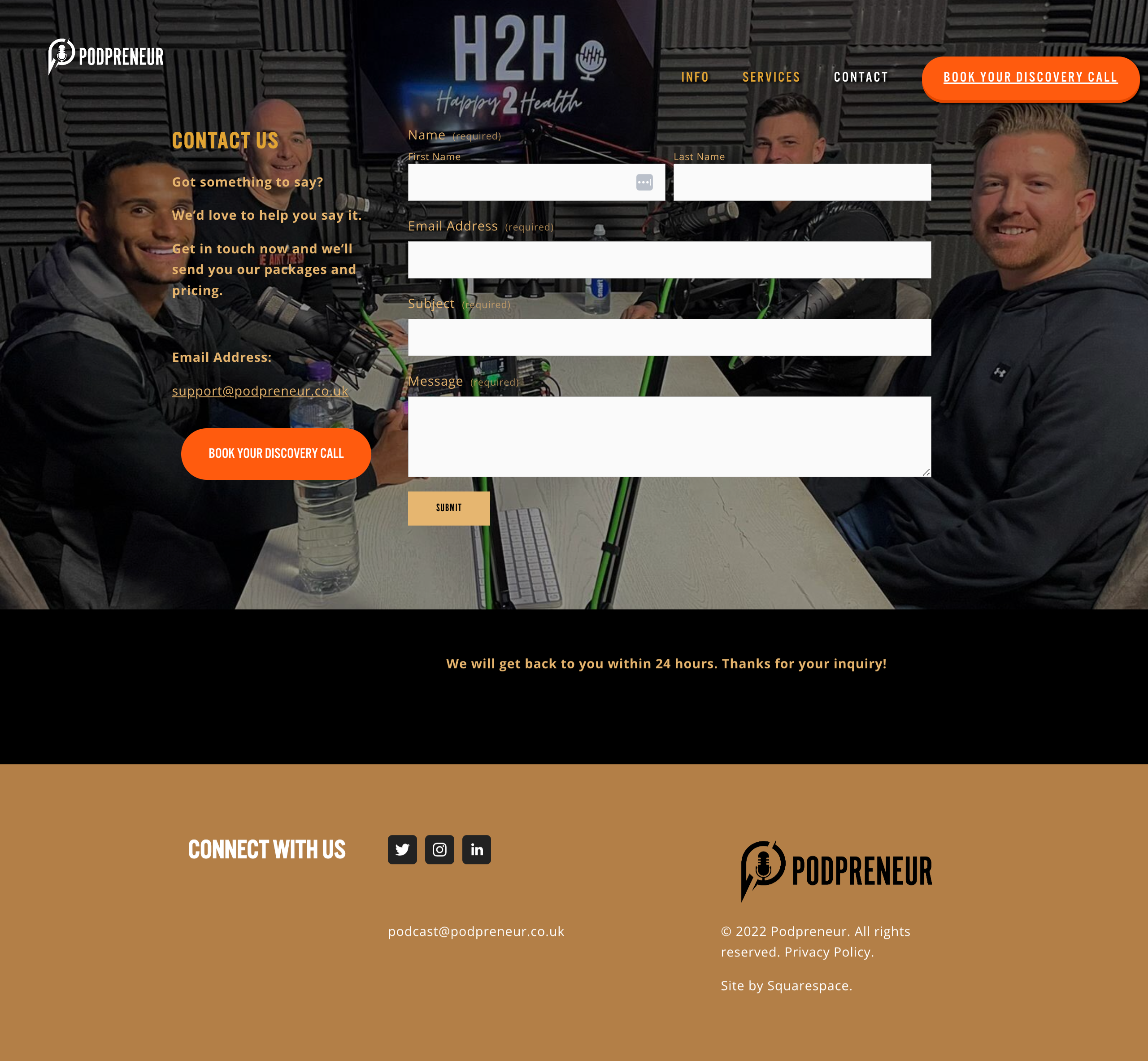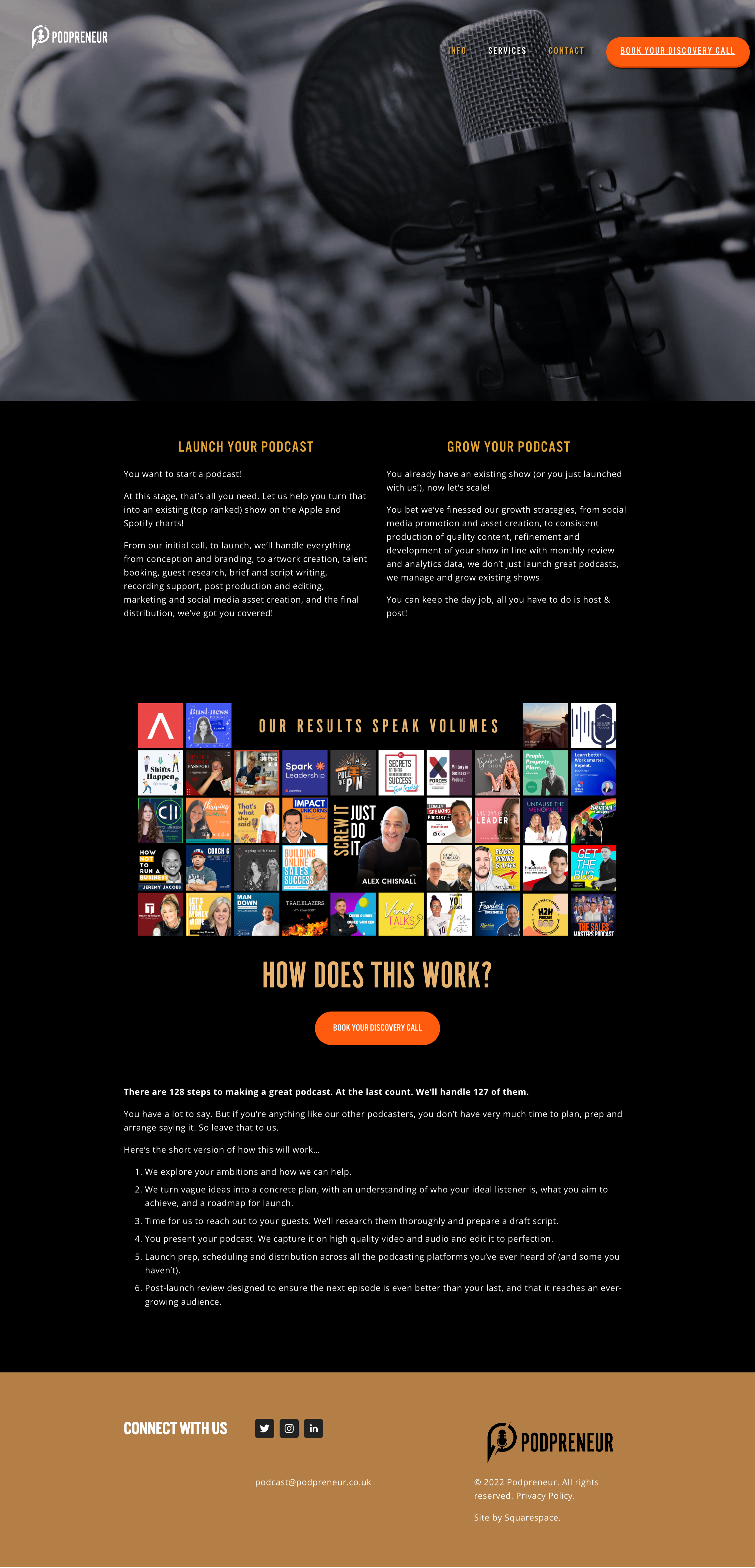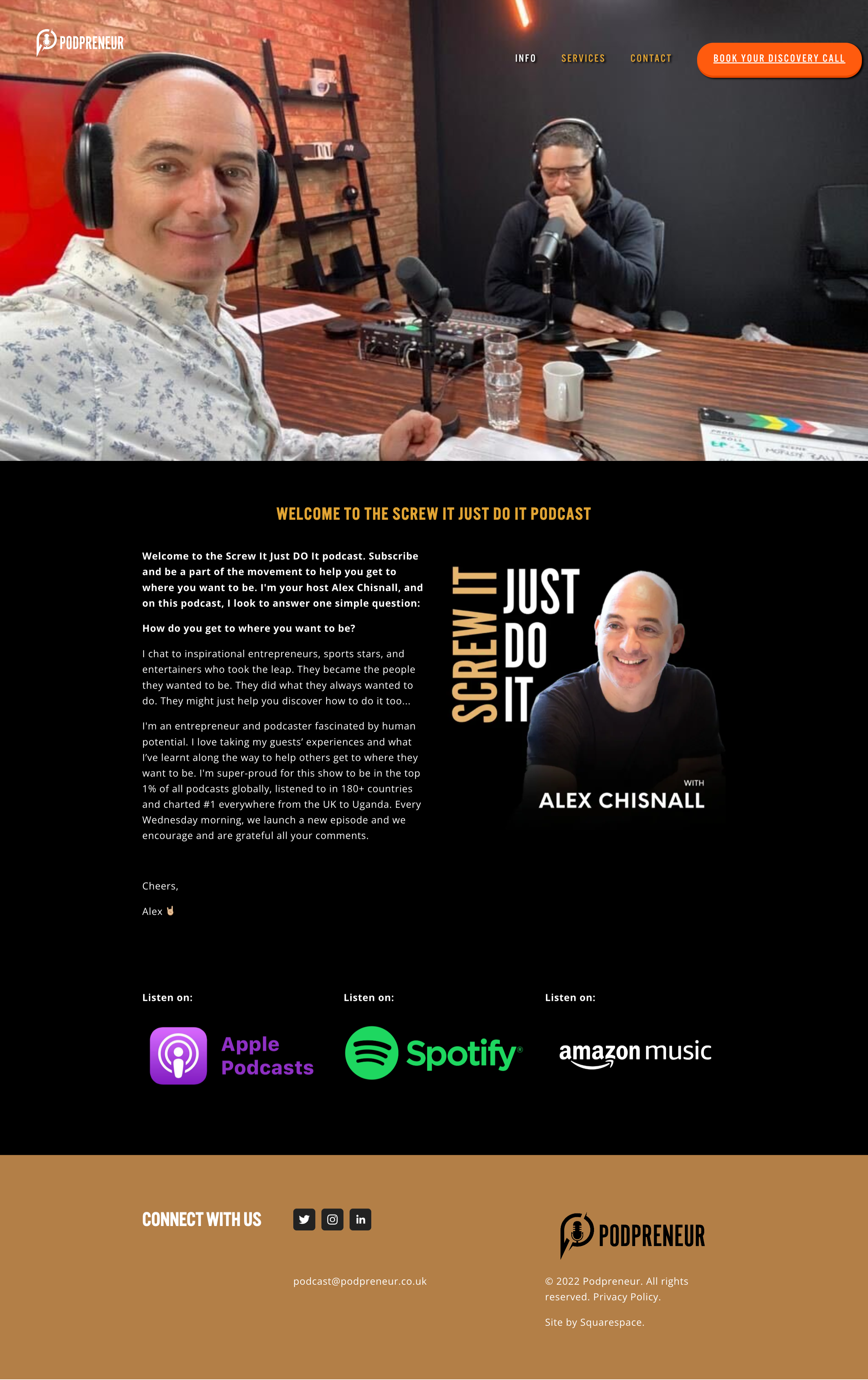 Long-time client since 2018 (and not to mention my first major design contact) Alex Chisnall reached out to me for a redesign of his podcast coaching and training service Podpreneur.