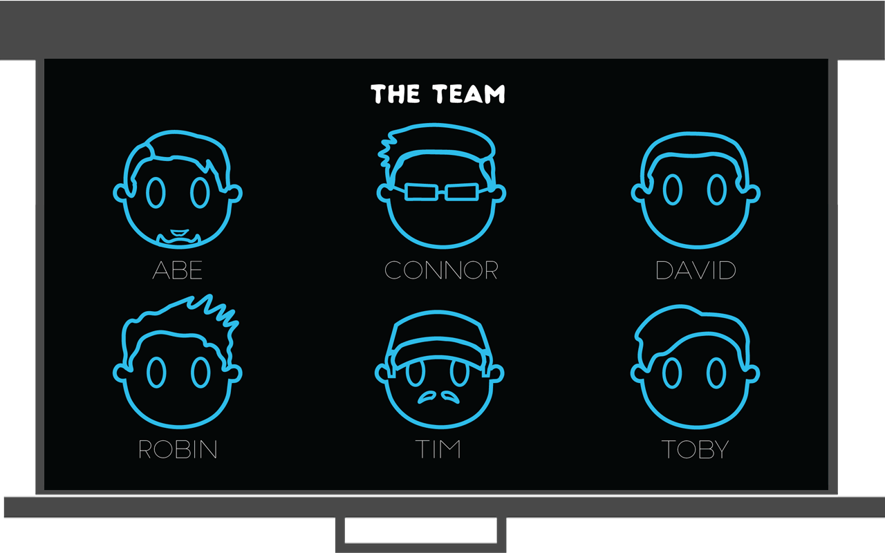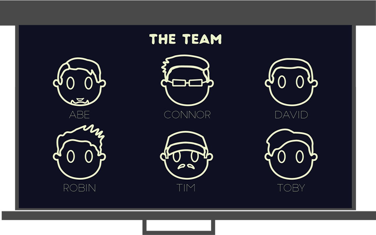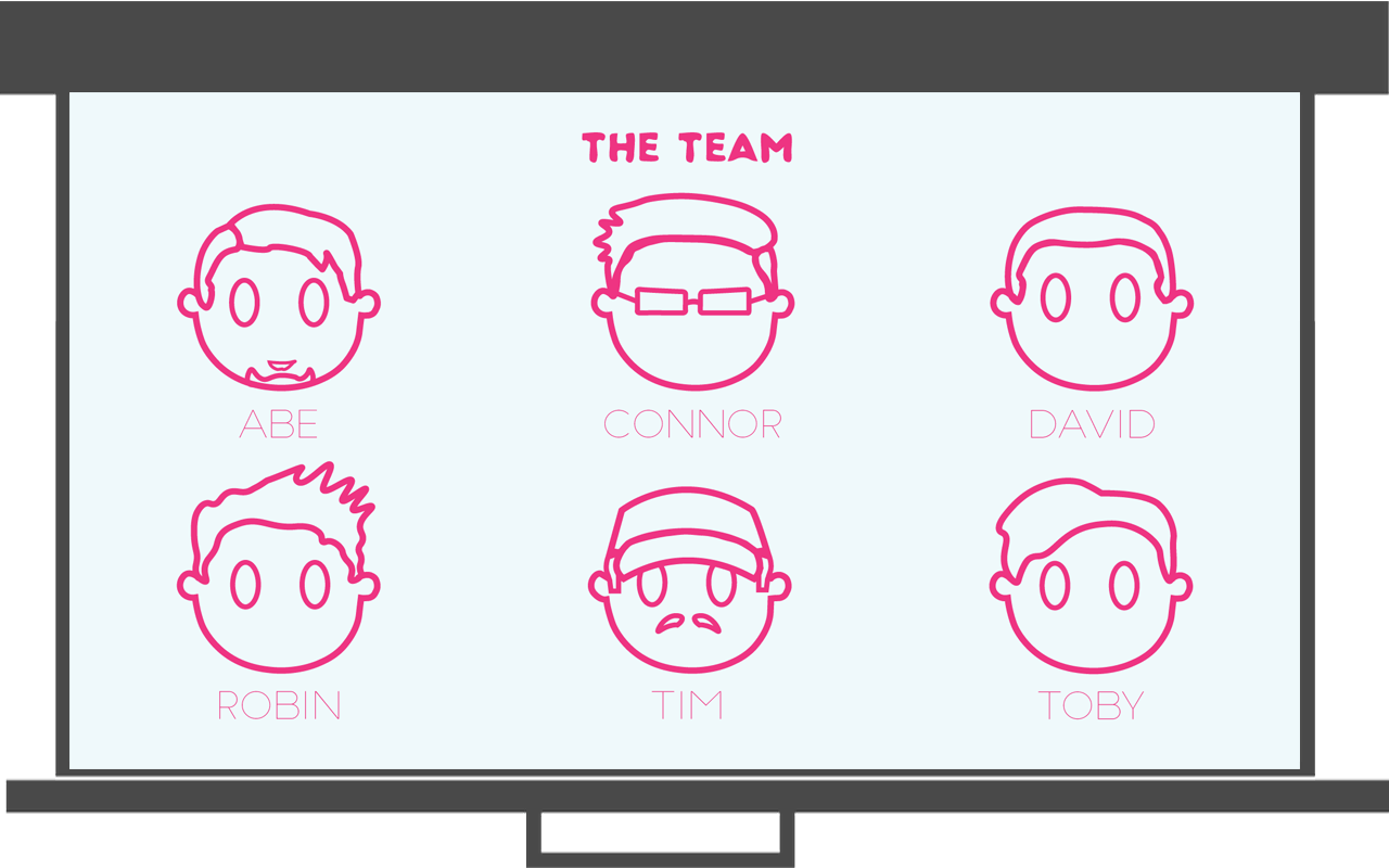 I designed these line-based avatars for our production team during a university assignment. I gave us all a simple, cartoony look that uses finer, distinguishable details (such as cap, glasses and various hairstyles). On presentation day, these graphics were used to set us visually apart from the other teams that were presenting on that day.