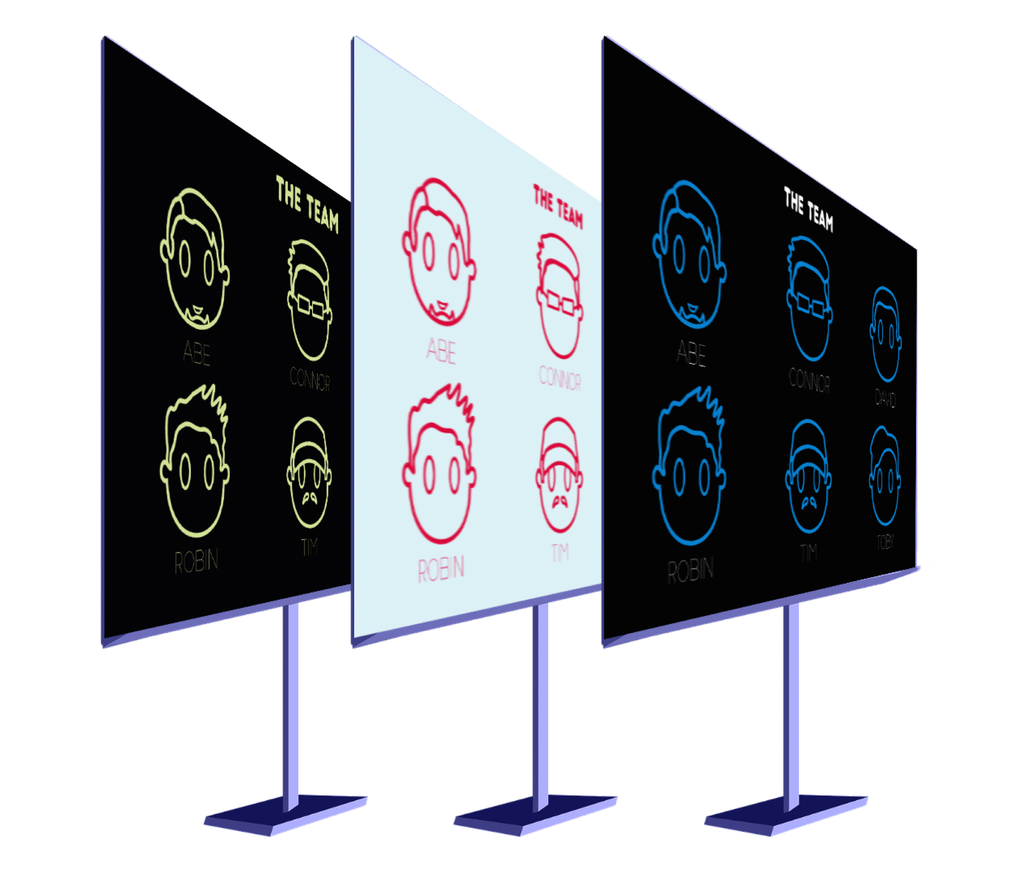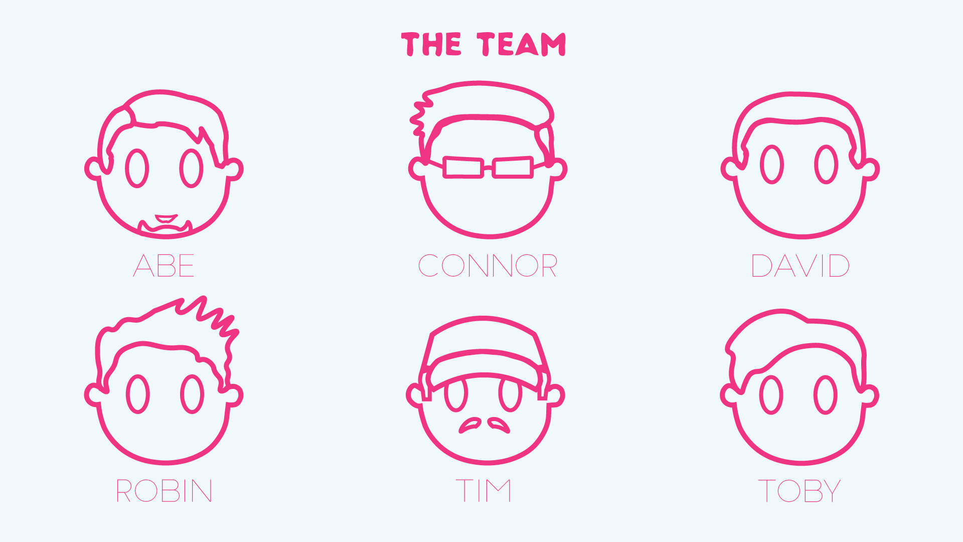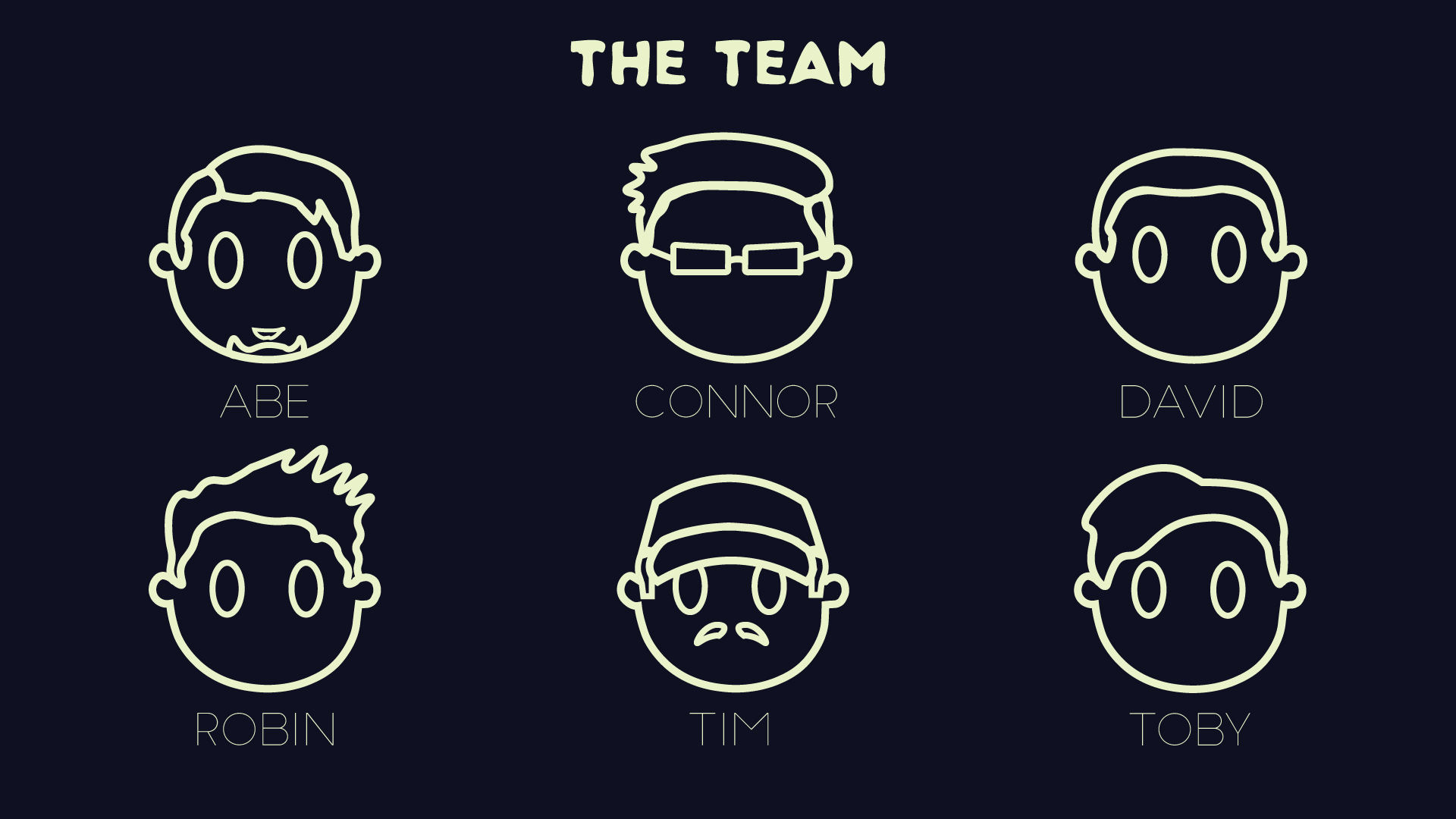 I designed these line-based avatars for our production team during a university assignment. I gave us all a simple, cartoony look that uses finer, distinguishable details (such as cap, glasses and various hairstyles). On presentation day, these graphics were used to set us visually apart from the other teams that were presenting on that day.