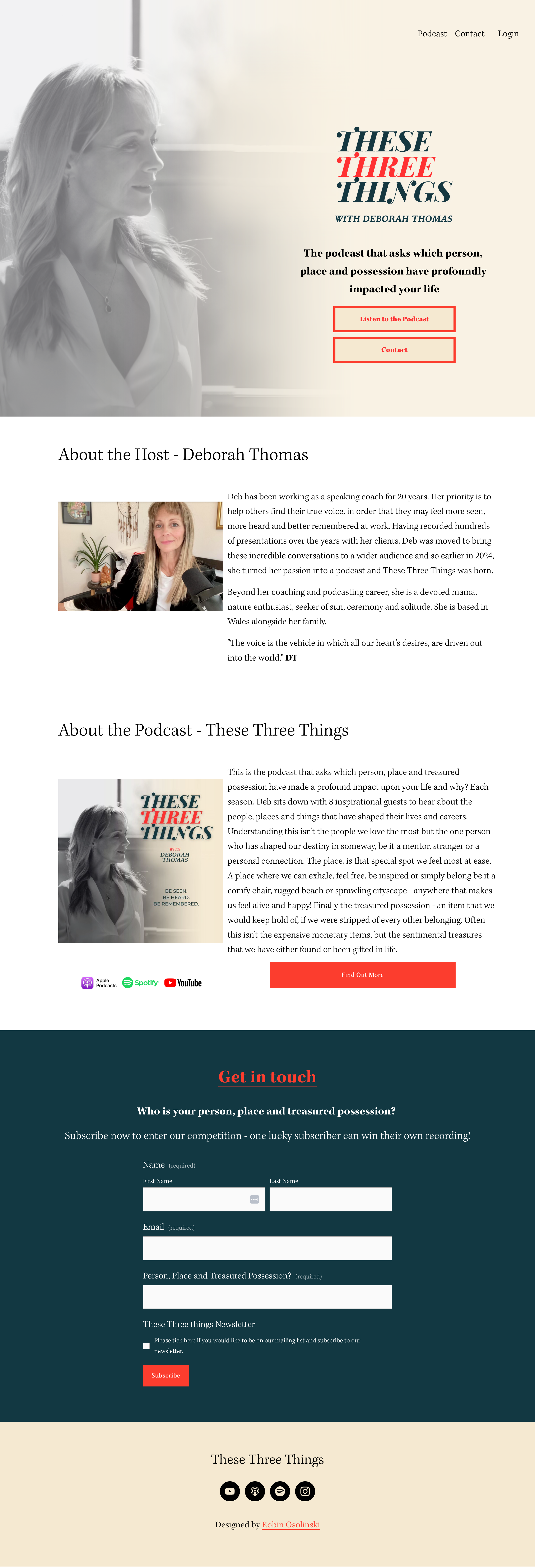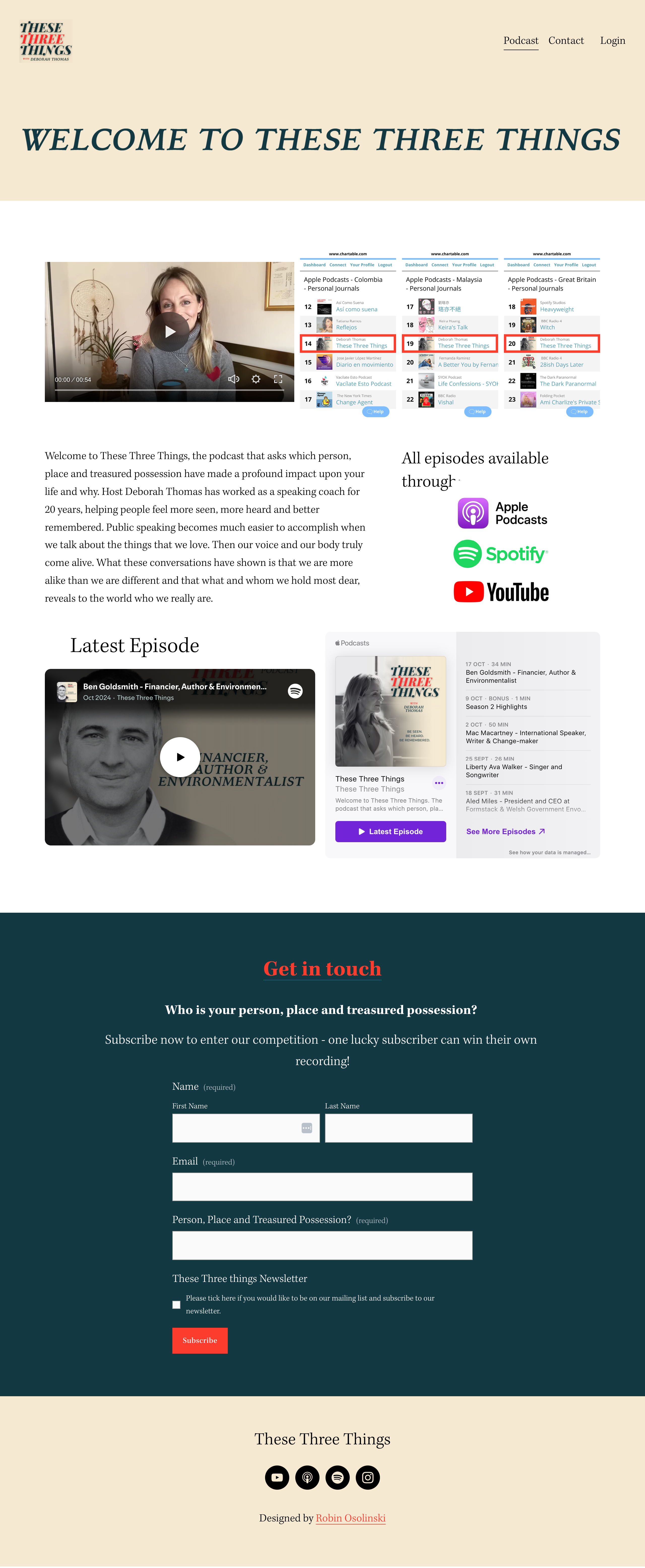 Undergoing this process required an equal amount of attention for her practice and her podcast. This was why setting up these two main pages on Squarespace properly without it being to full of information was important. I am very proud of the end result and I advise you to listen to her podcast on the following platforms!